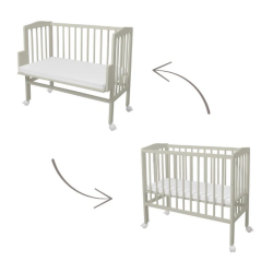 Funkcja dostawki i samodzielnego łóżeczka – możliwość użytkowania jako dostawka do łóżka rodziców lub jako samodzielne łóżeczko.