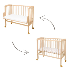 Funkcja dostawki i samodzielnego łóżeczka – możliwość użytkowania jako dostawka do łóżka rodziców lub jako samodzielne łóżeczko.