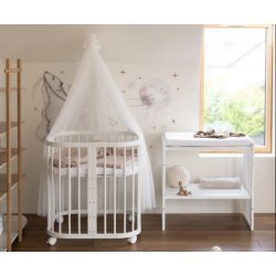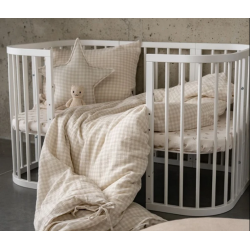 Łóżeczko w kolorze drewna świetnie odnajdzie się we wszystkich wnętrzach urządzonych w stylu naturalnym i boho, także w zakresie pokoju dla dziecka. Jest ono pokryte wyłącznie lakierem, dzięki czemu jego wierzchnia warstwa jest doskonale zabezpieczona, a neutralny design idealny do zaaranżowania w wybrany przez siebie sposób. Tego typu łóżeczko z wyprawką przez swój minimalistyczny wygląd będzie pasowało do pokoiku noworodka i dalej dla starszych dzieci, w tym chłopca czy dziewczynki, bez konieczności wymiany mebelka na nowy. Kupując łóżeczko raz, nie musisz martwić się o dokupienie kolejnych rozwiązań!